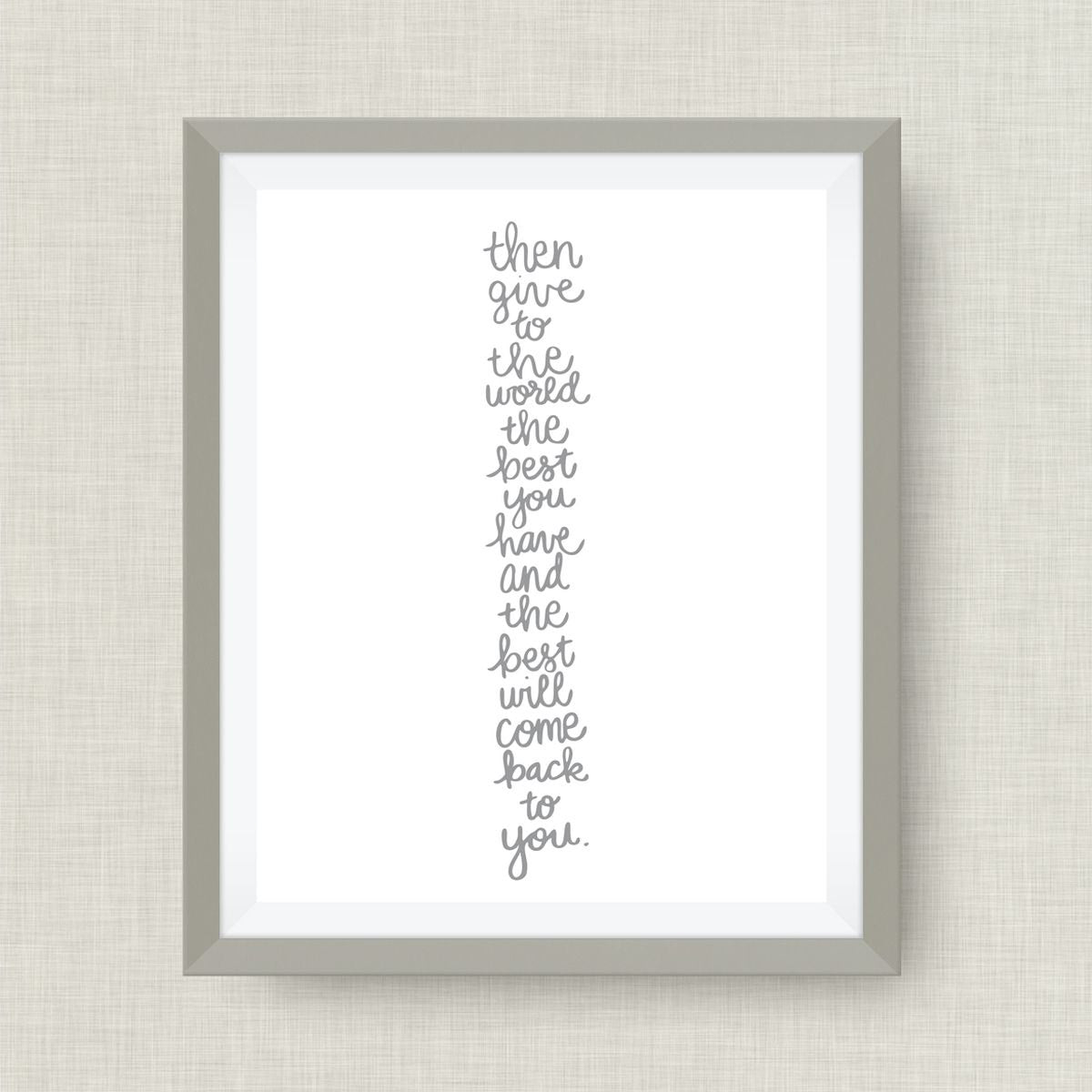 Elevate your living space with the inspiring “Then give to the world the best you have” art print by Madeline Bridges. This exquisite piece serves as a daily reminder to embrace your full potential and share your unique gifts with the world. Perfect for home or office, this print is more than just decor-it’s a statement of intent and purpose.